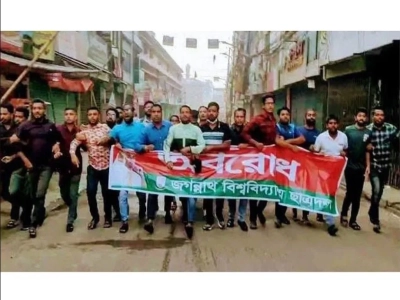 অবরোধের সমর্থনে পুরান ঢাকায় জবি ছাত্রদলের বিক্ষোভ মিছিল