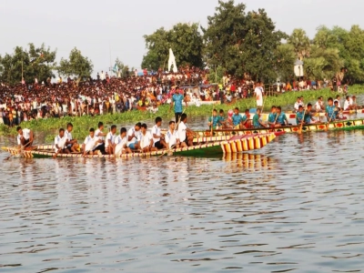 নৌকাবাইচে উল্লাসে মাতল সাপাহারবাসী