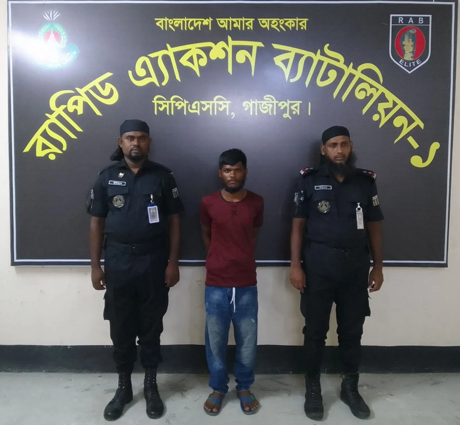 গতকাল ০৩ অক্টোবর ২০২৩ খ্রিঃ তারিখ আনুমানিন সন্ধ্যা ১৮.০০ ঘটিকায় র্যাব-১০ এর একটি আভিযানিক দল গোপন সংবাদের ভিত্তিতে এবং র্যাব-১ এর সহযোগীতায় গাজিপুর জেলার কালিয়াকৈর পুরাতন বাসস্ট্যান্ড এলাকায় একটি যৌথ অভিযান পরিচালনা করে। উক্ত অভিযানে ফরিদপুর জেলার সদরপুর এলাকায় চাঞ্চল্যকর মান্নান হত্যার ঘটনায় সক্রিয়ভাবে জড়িত অন্যতম প্রধান হত্যাকারী পলাতক আসামি মোঃ সোহেল মল্লিক (৩০), পিতা- দিলো মল্লিক, পালক পিতা-মালেক, সাং-চর ডুবাইল, থানা-সদরপুর, জেলা-ফরিদপুর’কে গ্রেফতার করে।