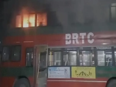রাজধানীর আবদুল্লাহপুরে বিআরটিসির বাসে আগুন