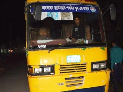 অবরোধ শুরুর আগের রাতে সিলেটে স্কুলবাসে আগুন