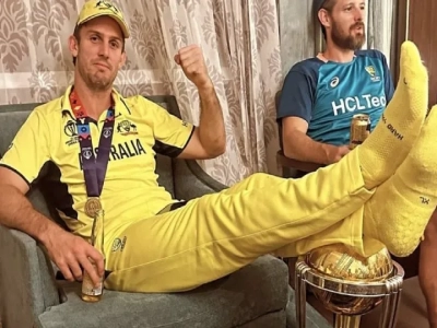 বিশ্বকাপ ট্রফির উপর পা তুলে বিতর্কের মুখে অজি তারকা