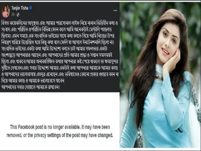 ক্ষমা চাওয়ার সেই পোস্ট মুছে দিলেন তিশা