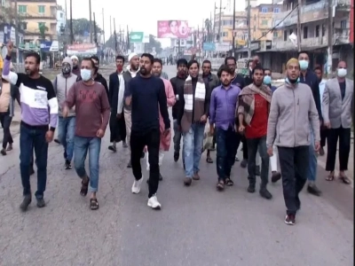লক্ষ্মীপুরে হরতালের সমর্থনে ঝটিকা মিছিল, বাস ভাঙচুর