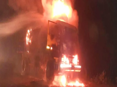 সিরাজগঞ্জে গম বোঝাই ট্রাকে আগুন