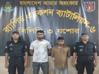 যশোরের শীর্ষ সন্ত্রাসী কুদরত খান ও তার সহযোগী সম্রাটকে ০১ টি বিদেশী পিস্তল ও ০২ টি ককটেল বোমা সহ গ্রেফতার করেছে র্যাব-৬
