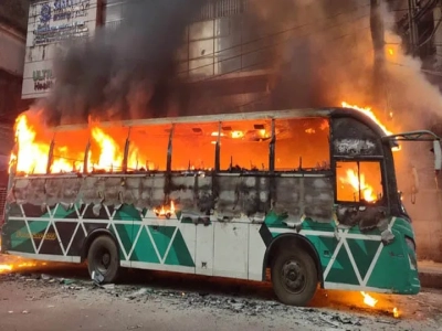 ঢাকায় কয়েকটি স্থানে বাসে আগুন