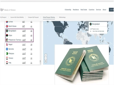 বৈশ্বিক পাসপোর্ট সূচকে ফিলিস্তিনের সাথে একই অবস্থানে বাংলাদেশ