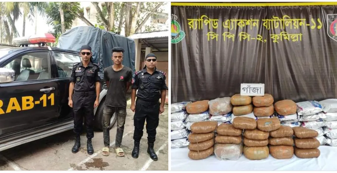 কুমিল্লায় ১১১ কেজি গাজাসহ একজন মাদক ব্যবসায়ী র্যাবের হাতে গ্রেফতার