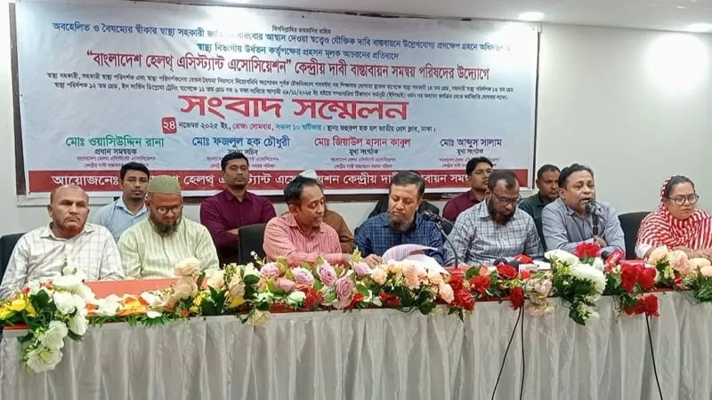 ৬ দফা দাবির বাস্তবায়ন না হওয়ায় ফের কর্মবিরতিতে ফেরার ঘোষণা দিয়েছে বাংলাদেশ হেলথ অ্যাসিস্ট্যান্ট অ্যাসোসিয়েশন। আগামী বৃহস্পতিবারের মধ্যে সরকার প্রজ্ঞাপন জারি না করলে শনিবার থেকে কেন্দ্রীয় শহীদ মিনারে অনির্দিষ্টকালের শান্তিপূর্ণ অবস্থান কর্মসূচি শুরু করবেন স্বাস্থ্য সহকারীরা। সোমবার জাতীয় প্রেসক্লাবের জহুরুল হক হলে সংবাদ সম্মেলনে এ ঘোষণা দেন সংগঠনের কেন্দ্রীয় সমন্বয় পরিষদের প্রধান সমন্বয়ক ওয়াসি উদ্দিন রানা। অনুষ্ঠানে অন্যদের মধ্যে উপস্থিত ছিলেন সদস্য সচিব ফজলুল হক চৌধুরী, মুখ্য সংগঠক জিয়াউল হক কাবুল এবং আব্দুস সালাম।